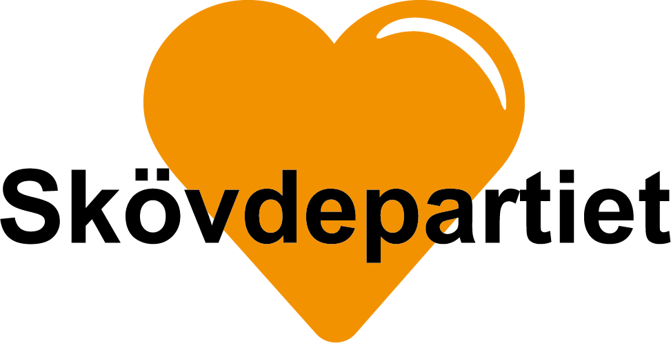 Här är fyra olika varianter av logotypen för Skövdepartiet.